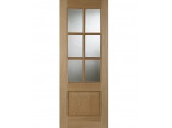 This door has solid oak Raised Mouldings around the panels and glass openings. The 35mm thick door is supplied with clear toughened glass with a bevelled edge feature on one side. 44mm FD30 option is also available and can be supplied either unglazed or glazed with clear flat fire glass. Mendes internal White Oak doors are manufactured to an extremely high standard by a factory that is considered to be a market leader in providing value for money without compromising product quality. The doors are of the preferred engineered construction which ensures maximum stability. The laminated timber stiles are edged with a 10mm thick oak lipping (18mm for FD30) and over veneered with White Oak. The door panels have an MDF core and are faced with the same veneer. Beading is of solid White Oak. This door is supplied unfinished. Free delivery for 10 or more doors to Zones 1-6 (Delivery options shown in shopping basket). Please contact us to place orders for 10 or more doors.